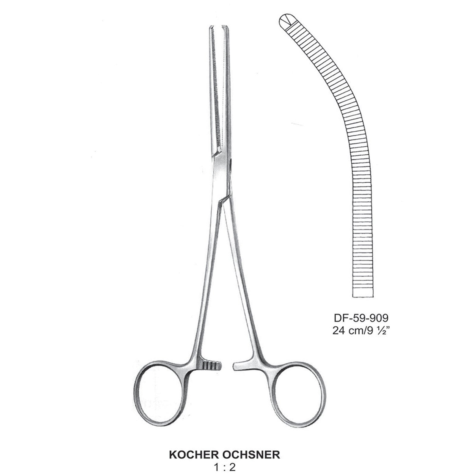 Kocher-Ochsner Artery Forceps, Cvd, 1X2 Teeth, 24Cm (SS-59-909)