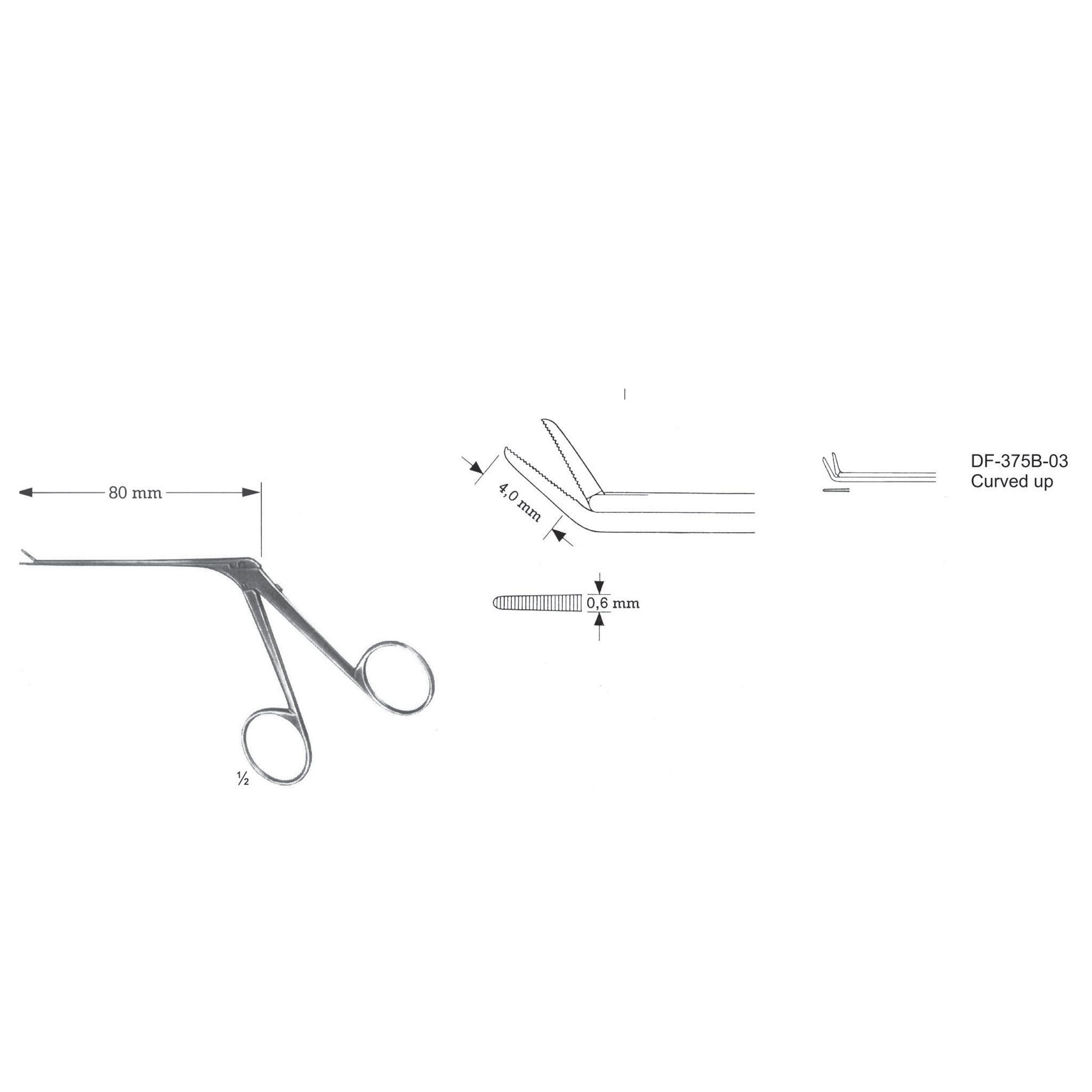 Micro Ear Forceps, Shaft Length 80Mm, Serrated, Curved Up (SS-375B-03)