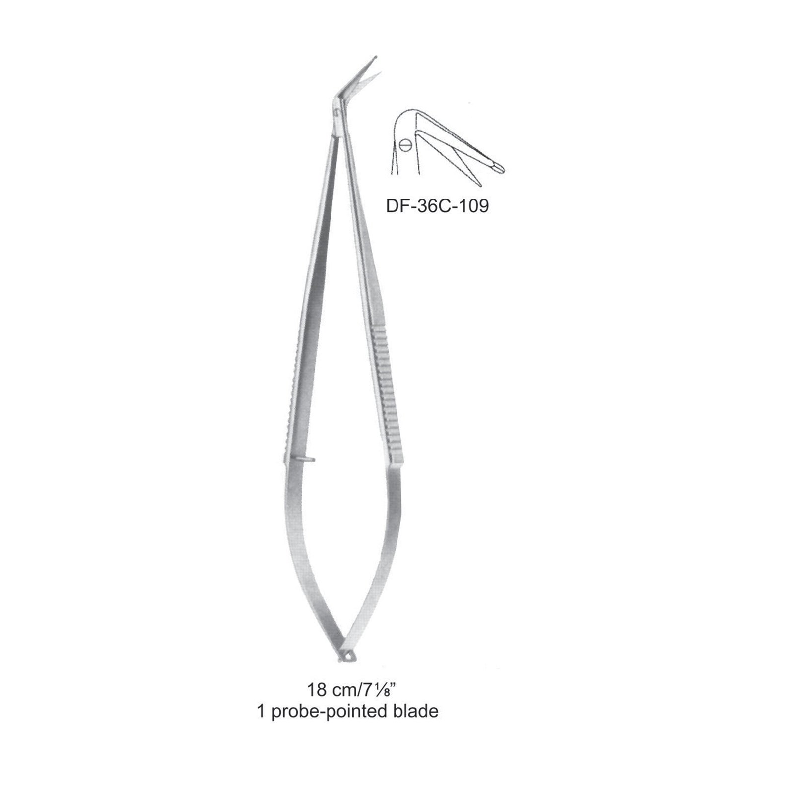 Micro Scissors, One Probe-Pointed Blade, 125°, 18Cm (SS-36C-109)