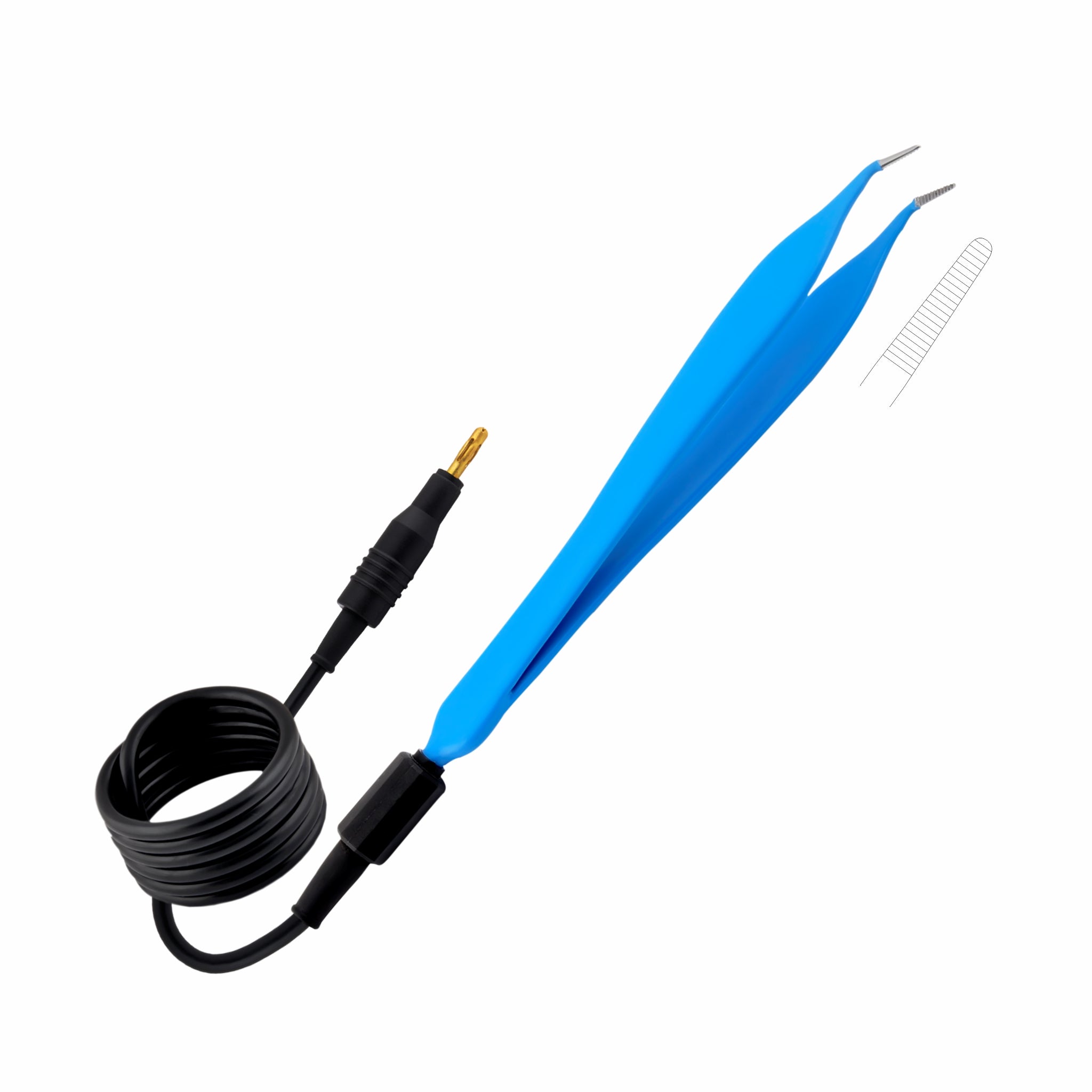 Single-Use Monopolar, Adson Forceps, Angled, 12Cm Length, 0.5Mm Tip, With 3 Meter Cable, 4Mm Terminating End, Blue