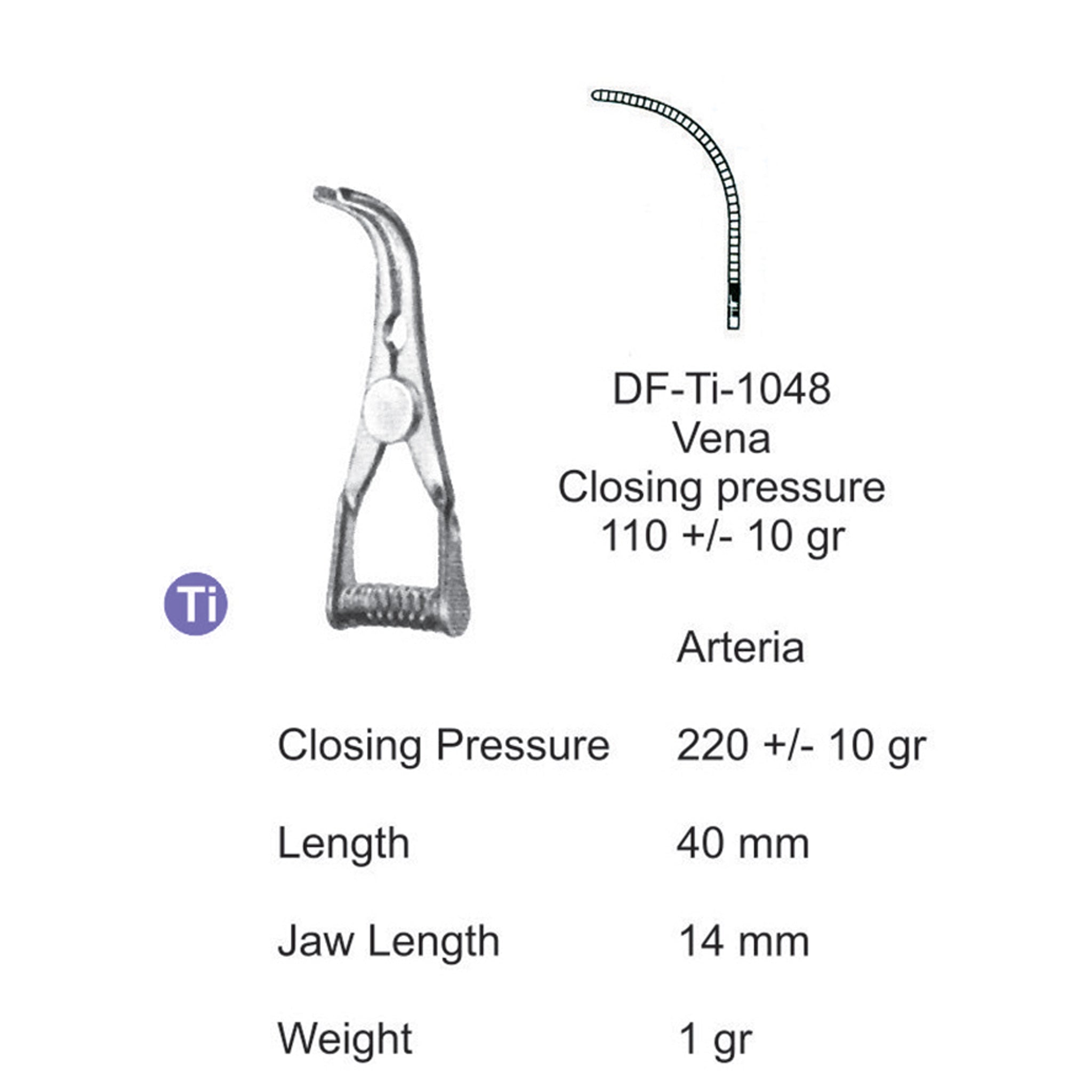 Titanium-Atraum Bulldog Clamps, Length 40Mm, Angled, Jaw Length 14Mm (SS-Ti-1048)